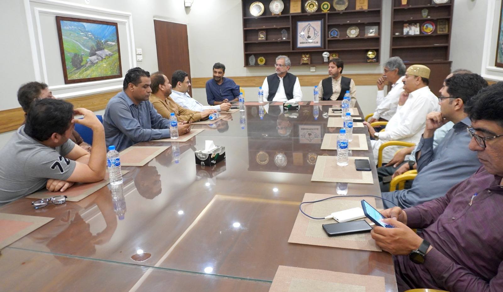 Before the session, Shahid Khaqan Abbasi, Miftah Ismail, and their delegation held a special meeting with the Governing Body of the Club. They were warmly welcomed by KPC President Fazil Jamili, Secretary Muhammad Sohail Afzal Khan, Treasurer Imran Ayub, and Joint Secretary Muhammad Munsif.