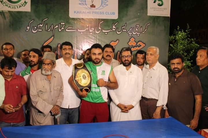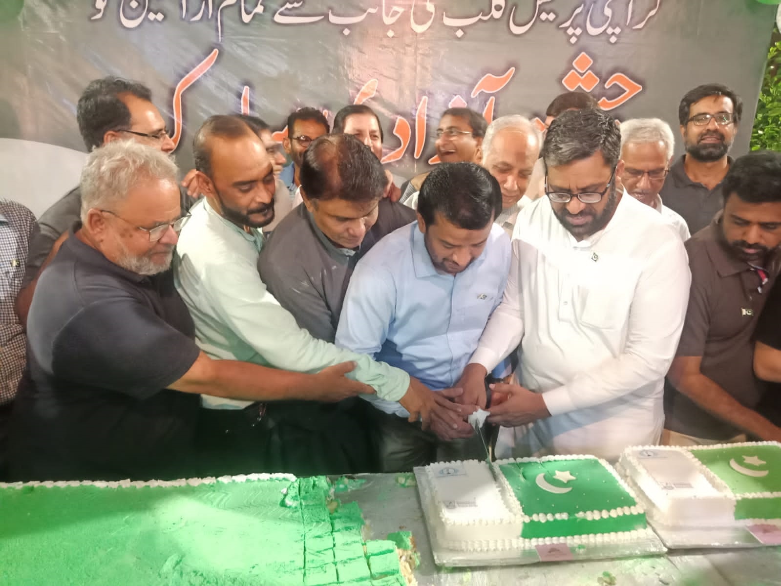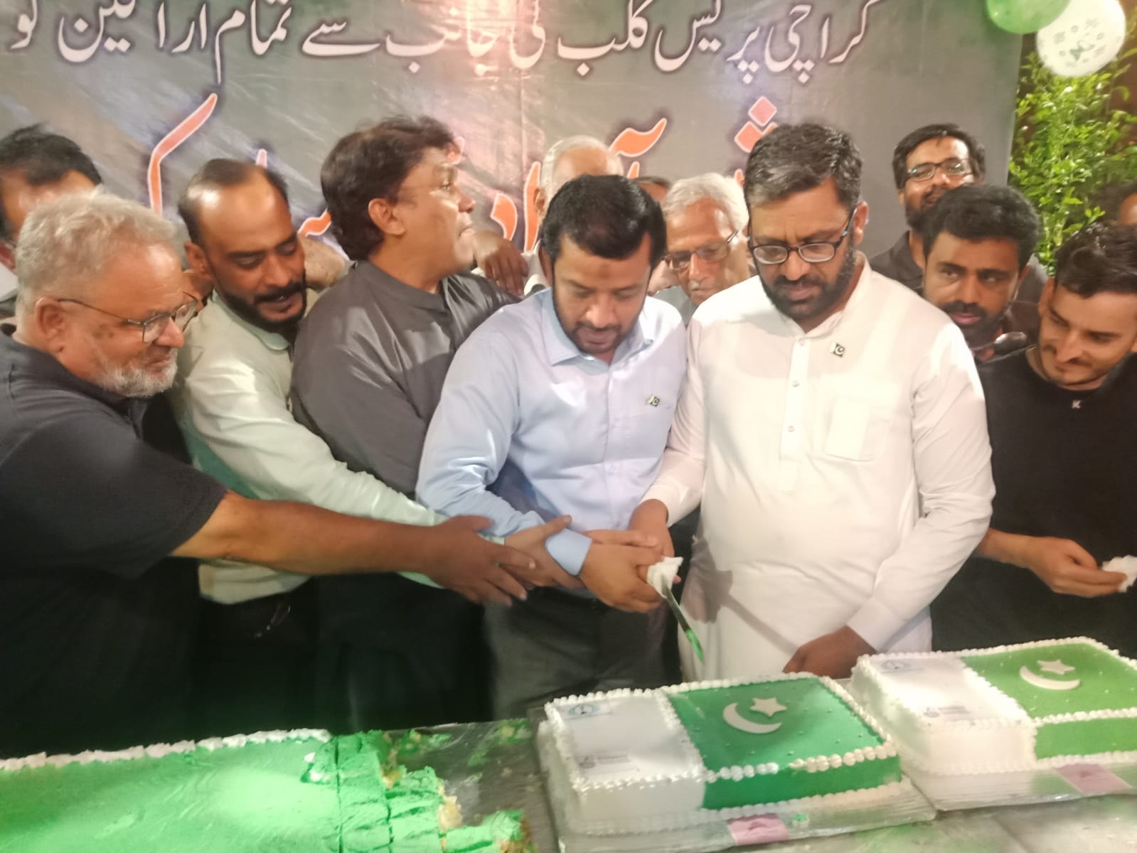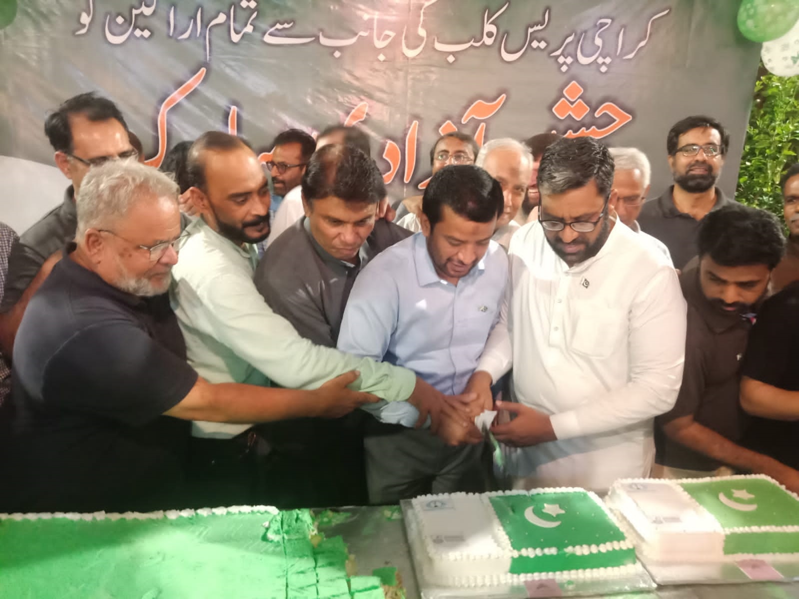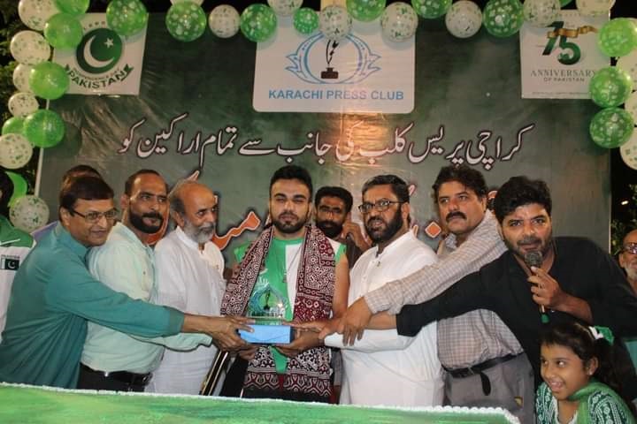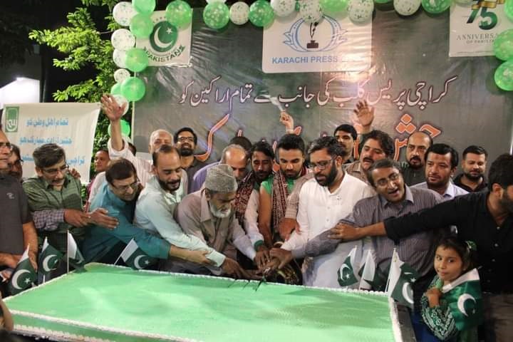 On the occasion of 75th Independence Day at Karachi Press Club A 75-pound cake was cut.