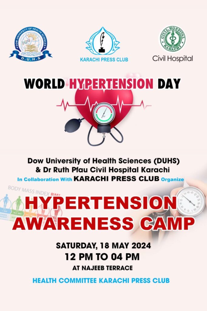 In collaboration with Dow University of Health Sciences, an awareness camp is being organized for the members of Karachi Press Club and their families. This event will take place on Saturday, May 18, 2024, from 12 PM to 4 PM.