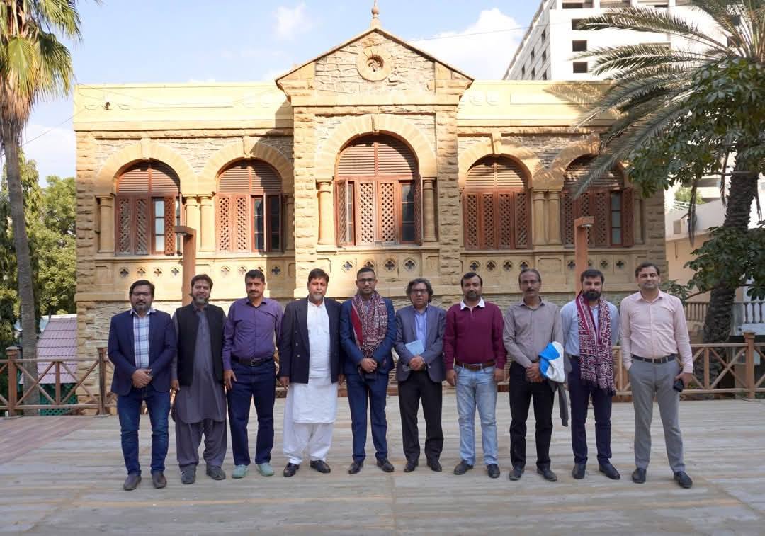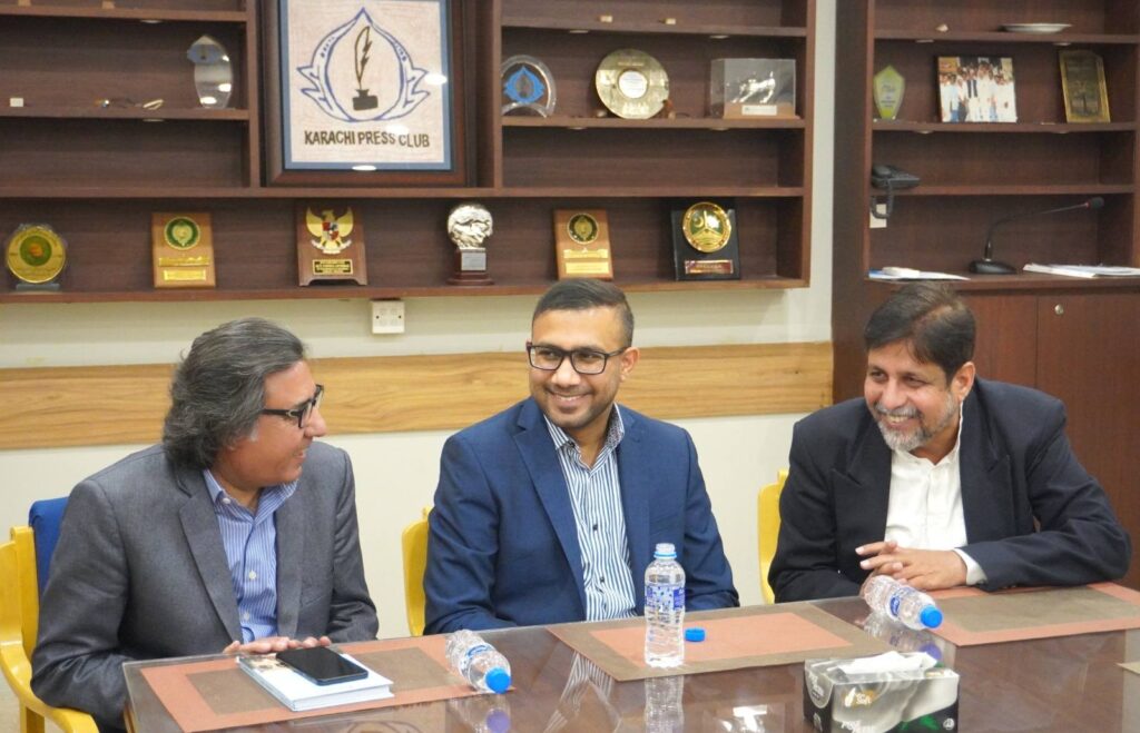 Pawan Dhande, Director of Communications at the British High Commission, visited the Karachi Press Club (KPC). During his visit, he met with KPC President Fazil Jamili, Secretary Sohail Afzal Khan, Joint Secretary Muhammad Munsif, and Governing Body Members Qazi Muhammad Yasir and Manzoor Sheikh.
