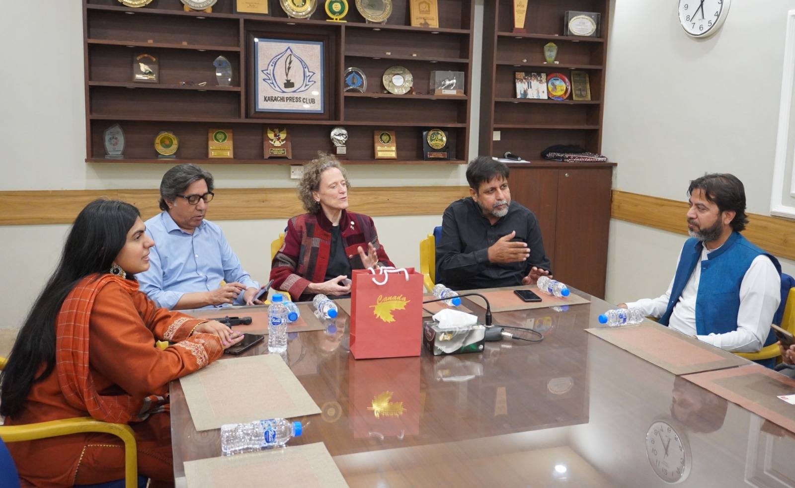 The meeting was attended by KPC Joint Secretary Muhammad Munsif, Governing Body members Manzoor Shaikh, Mona Siddiqui, former Joint Secretary Naimat Khan, and Canadian High Commission Media Coordinator Zarmina Nayar.