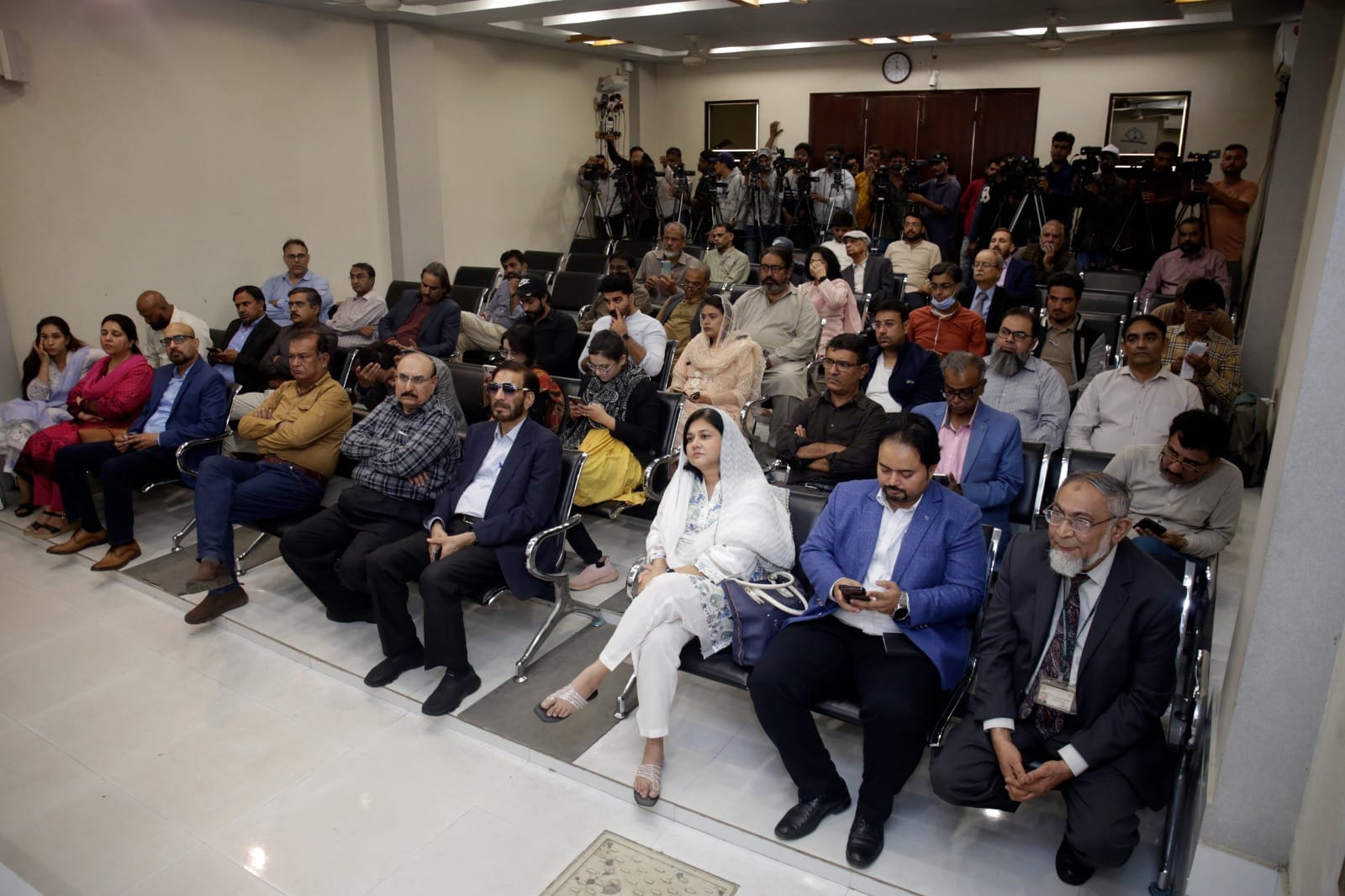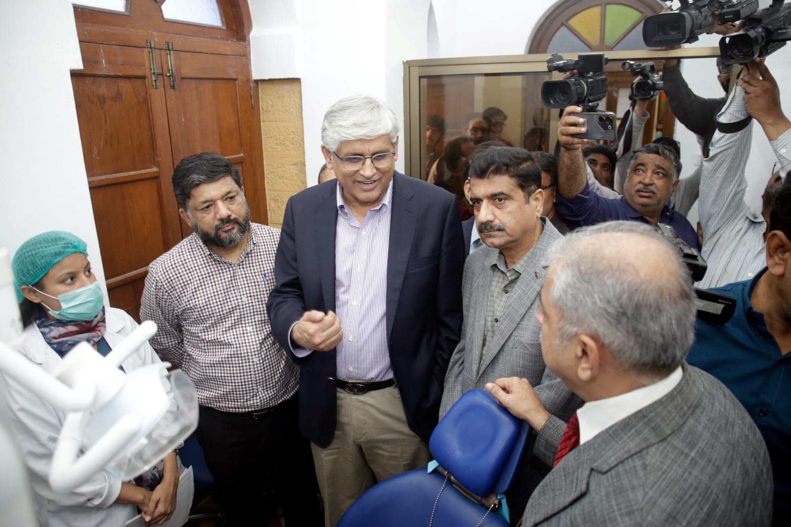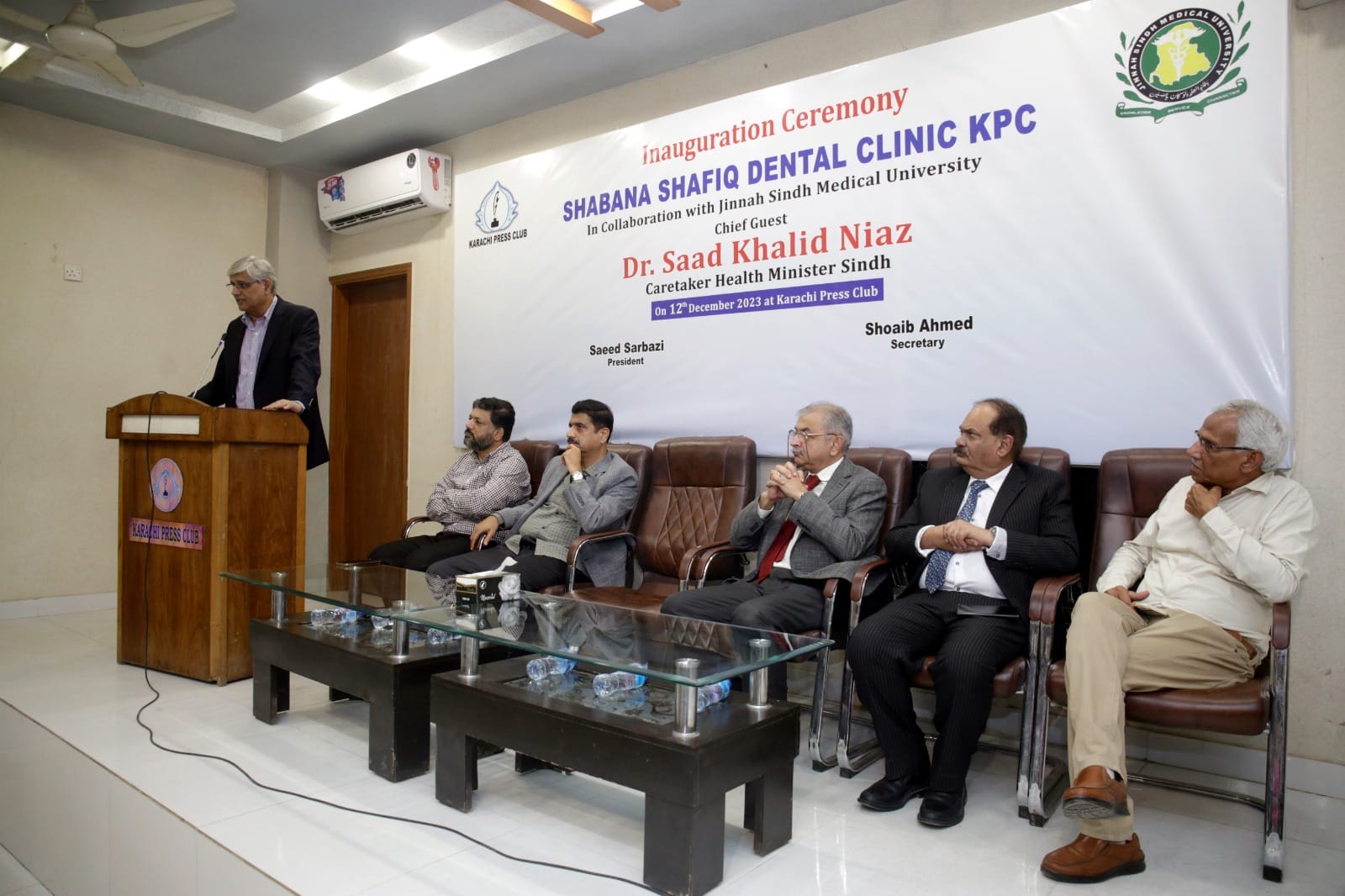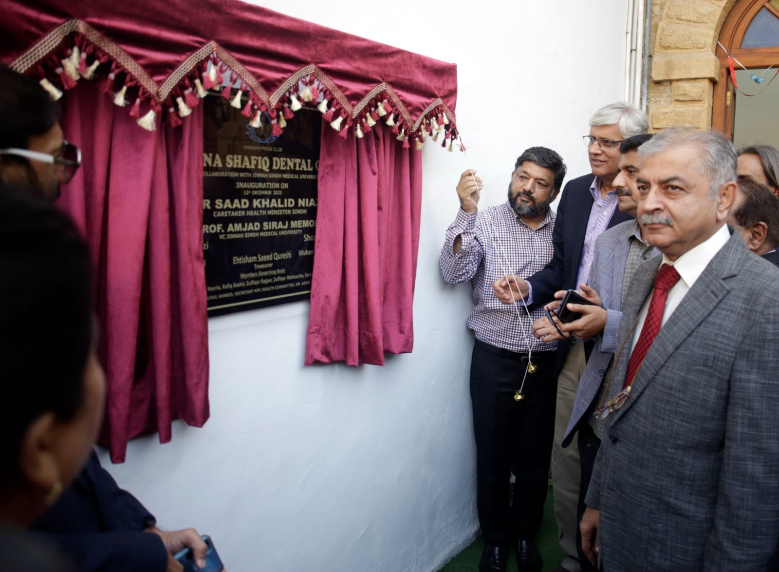 Caretaker Provincial Health Minister Dr. Saad Khalid Niaz, Vice Chancellor of Jinnah Sindh Medical University Professor Amjad Siraj Memon has inaugurated the Shabana Shafiq Dental Clinic established in collaboration with Jinnah Sindh Medical University at the Karachi Press Club on Tuesday. President Karachi Press Club Saeed Sarbazi, Secretary Shoaib Ahmed, Vice President Mushtaq Sohail, Khazan Ehtisham Saeed Qureshi, Governing Body Members Zulfiqar Rajpar, Kulsoom Jahan, Farooq Sami Health Committee Secretary Tufail Ahmed, Former President Karachi Press Club Imtiaz Khan Faran, PF A large number of club members including UJ Vice President Afsar Imran, Ex-Secretary Arman Sabir, Dr. Jabbar Khattak participated. Dr. Saad Khalid Niaz while addressing the event said that dental treatment is not covered even by the insurance company.