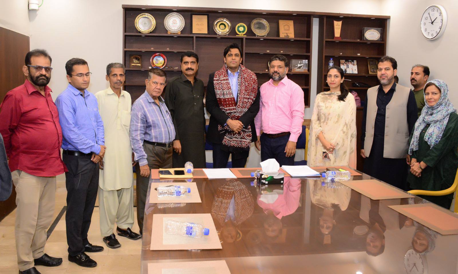 Chief Secretary Sindh, Syed Asif Haider Shah, visited the Karachi Press Club on Tuesday, praising the institution as a historic pillar that has played a vital role in supporting democracy. Upon his arrival, he was warmly welcomed by President Saeed Sarbazi, Secretary Shoaib Ahmed, and the Governing Body members. As a token of appreciation, the Chief Secretary was presented with a traditional Sindhi Ajrak and the club’s souvenir. He also toured various departments of the Press Club.