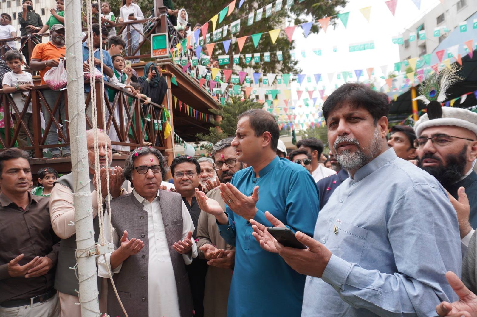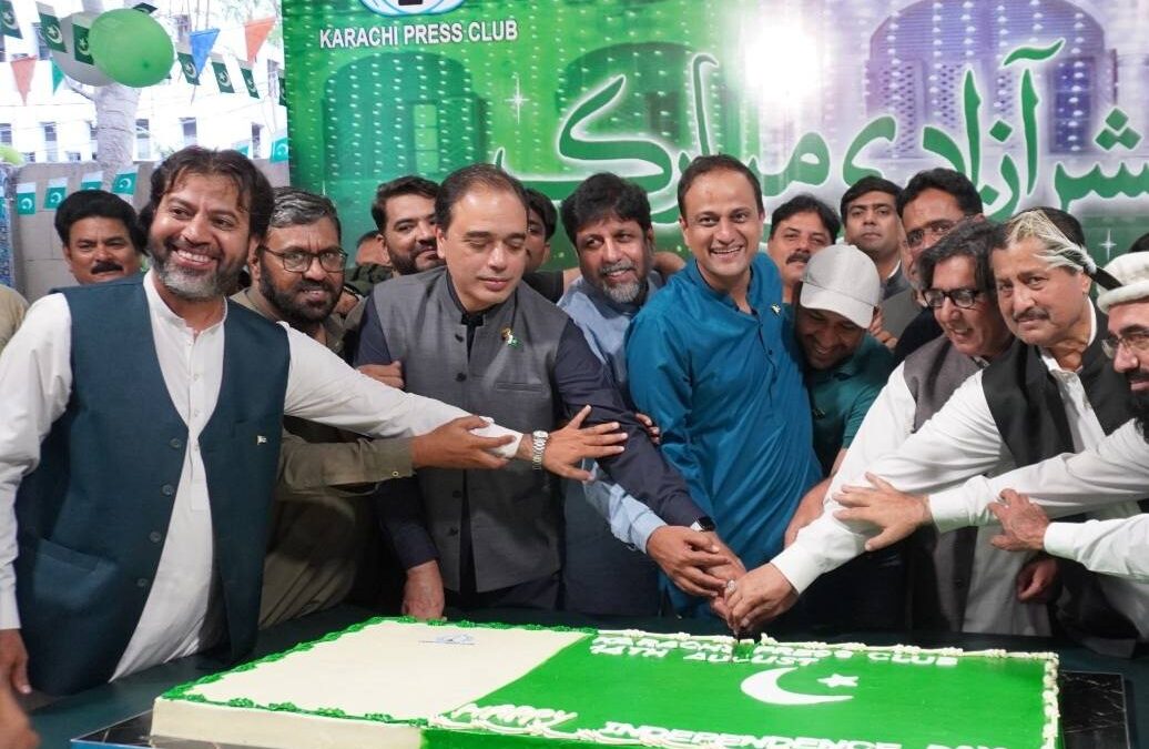 The Karachi Press Club (KPC) marked Independence Day with great enthusiasm, joined by Karachi Mayor Barrister Murtaza Wahab Siddiqui and former Pakistan cricket captain Sarfaraz Ahmed, along with KPC members and their families.