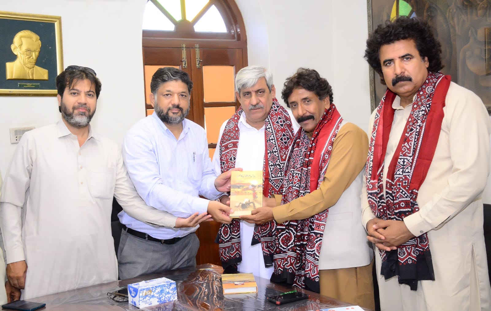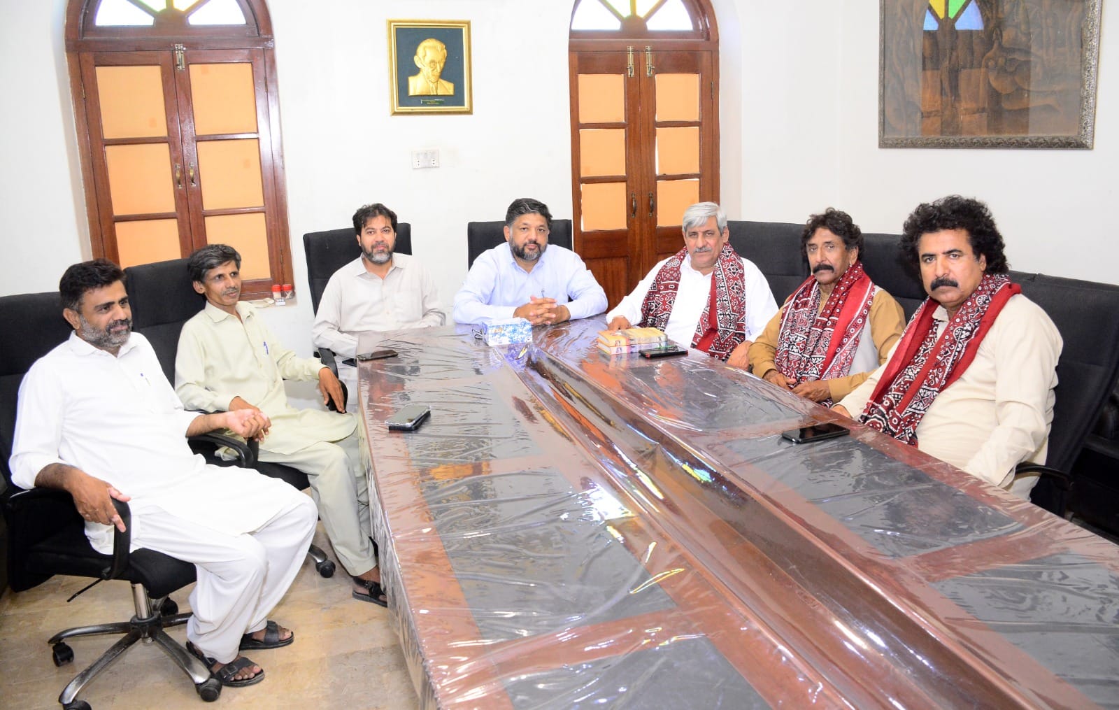 On Saturday, renowned Saraiki poets Jahangir Mukhlis and Shahid Alam Shahid visited the Karachi Press Club and met with Secretary Shoaib Ahmed, Joint Secretary Muhammad Munsif, and Governing Body member Noor Muhammad Kalhoro. The meeting was also attended by Saeed Khawar, Editor of Daily 92 News, Secretary of the Press and Publication Committee Abdul Rehman, and other members.
