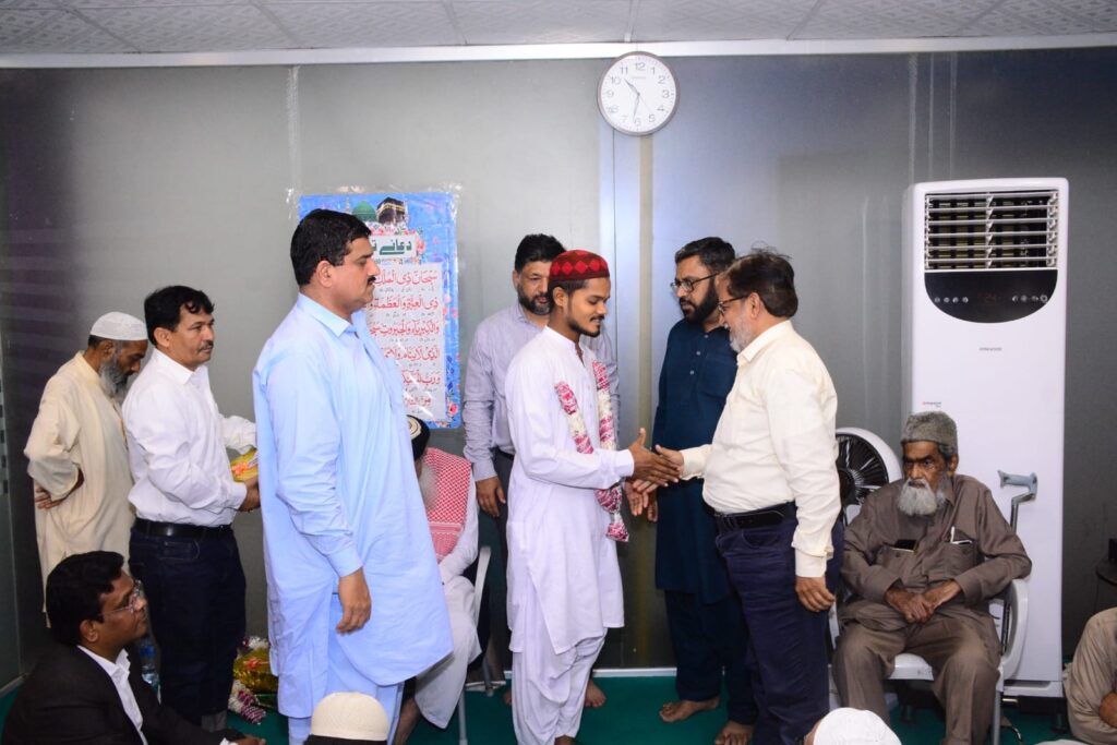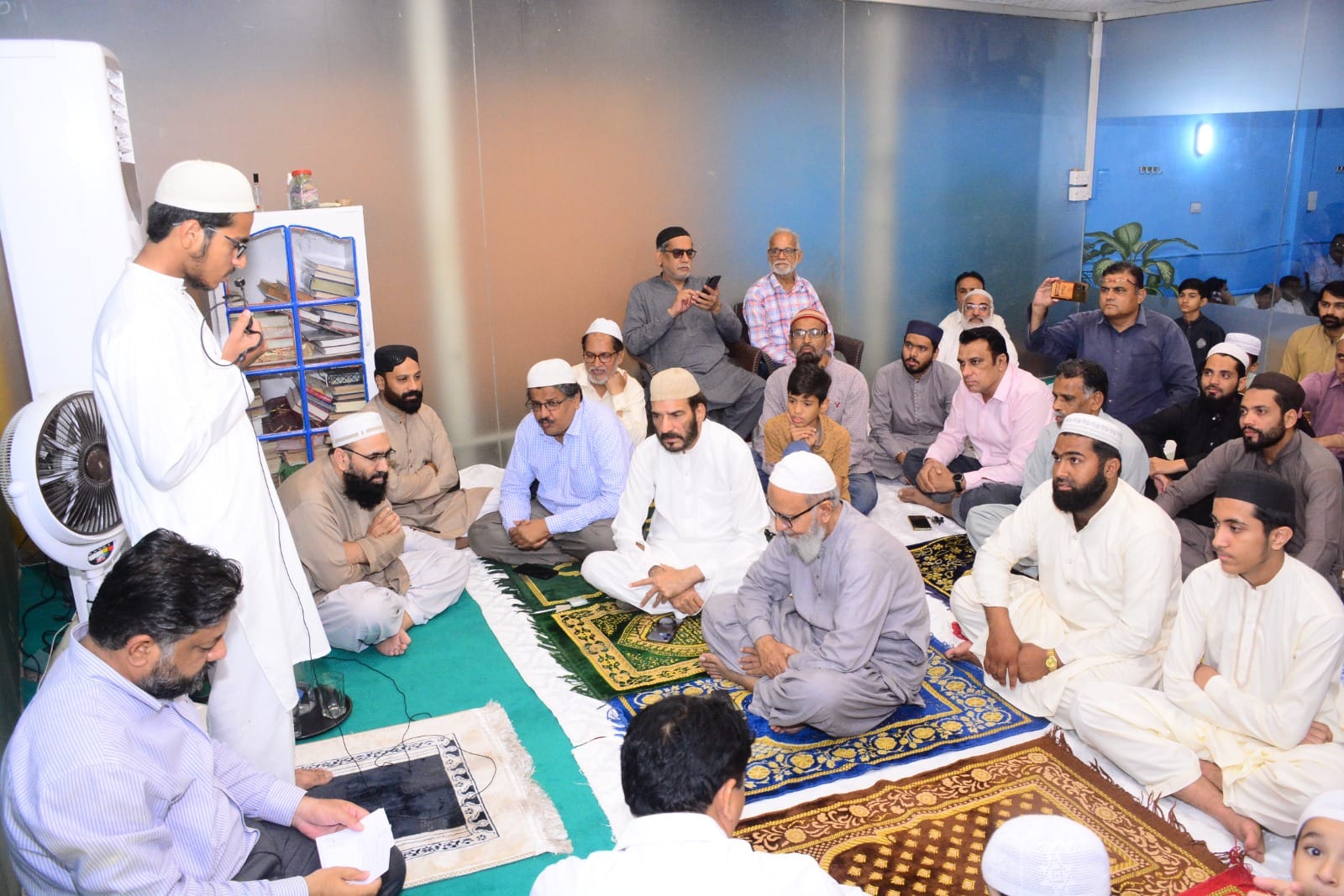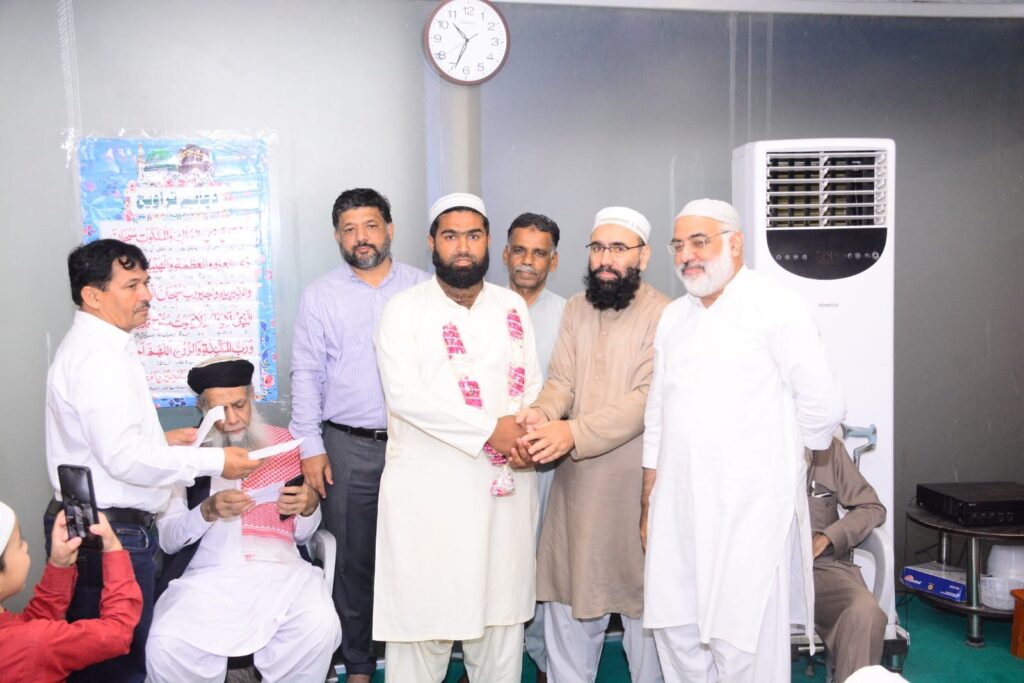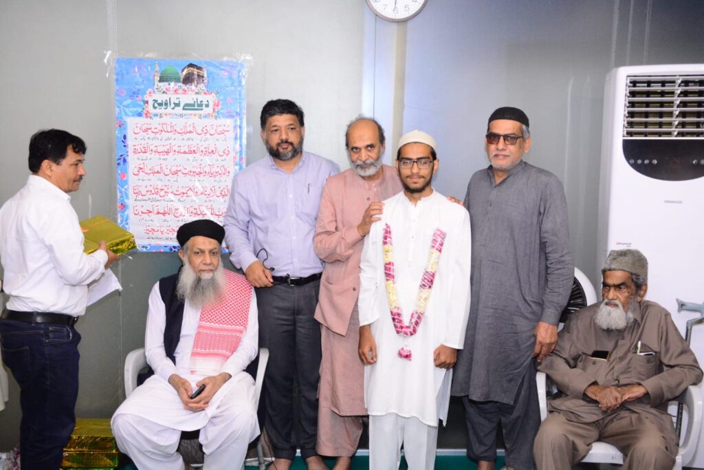 Under the auspices of the Karachi Press Club, a dignified ceremony of Taraweeh prayers was held on the 24th of Ramadan. Senior journalists participated in large numbers. The governing body of the Karachi Press Club and senior members distributed commendations to Hafiz Kashif Awan, Hafiz Usama, Hafiz Masood, Hafiz Saadullah, Hafiz Asadullah, and Qari Ishaq for their encouragement. Deputy Chief Reporter of Jassarat newspaper, Wajid Ansari, recited a Naat as a tribute. Saqib, the Secretary of the Karachi Press Club, and Shoaib Ahmed, the Secretary of the Karachi Press Club, expressed gratitude to Hafiz Kashif Awan for his special thanks for completing 12 years of Taraweeh prayers and for his full cooperation in this regard. The renowned religious scholar and preacher of the Jamia Masjid Quba, Maulana Sanaullah Rahmani, elaborated on the importance of completing the Quran and the virtues of Ramadan. Prayers were offered for all the deceased members of the Karachi Press Club, their loved ones, and all the sick members and their sick loved ones. Prayers were also offered for the progress and development of the Karachi Press Club and its officials, as well as for the Muslims of Gaza. Special prayers were offered for all the members who contributed to the decoration and arrangement of the prayer area and the completion of the Quran. At the end of the program, sweets and drinks were distributed among the attendees.