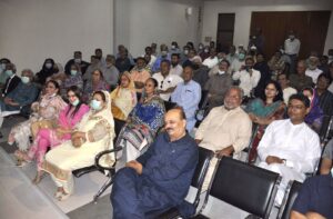 At the end of the ceremony, President Karachi Press Club Fazil Jamili, Secretary Karachi Press Club Muhammad Rizwan Bhatti and Member Governing body Aziz Sanghor presented traditional Ajrak and Sindhi Topi to Dr. Tauseef Ahmad Khan and awarded him Lifetime Membership Certificate. In his remarks, the guest of honor, Dr. Tauseef Ahmad Khan, thanked the Karachi Press Club.