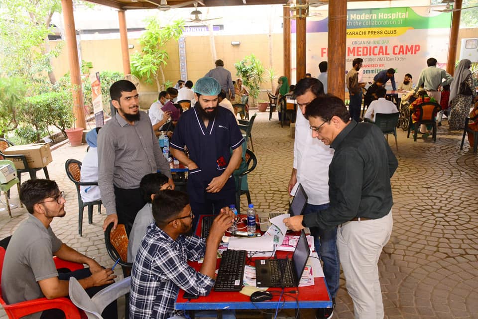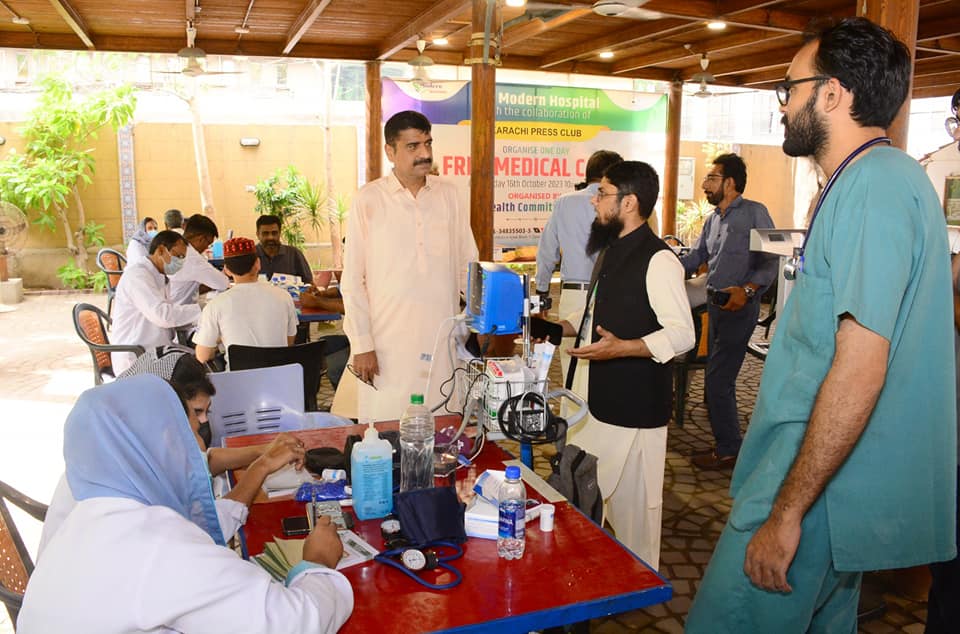 A medical camp was organized by Karachi Press Club, echo, ultrasound, laboratory tests, and other medical facilities were provided, the camp with the full participation of members and their families, Press Club President Saeed Sarbazi, Secretary Shoaib Ahmed and Medical Director of Marden Hospital Dr. Muhammad Akbar and others visited