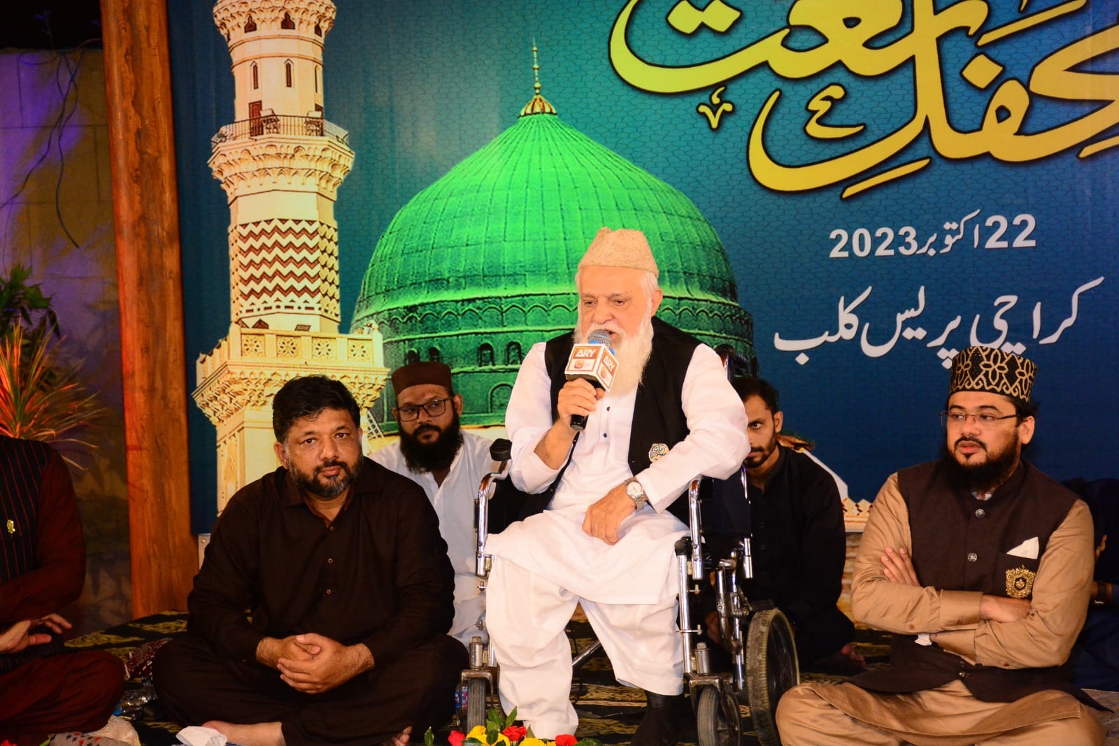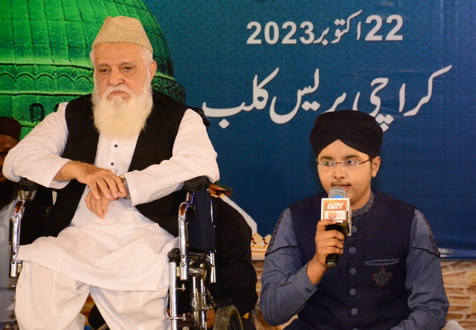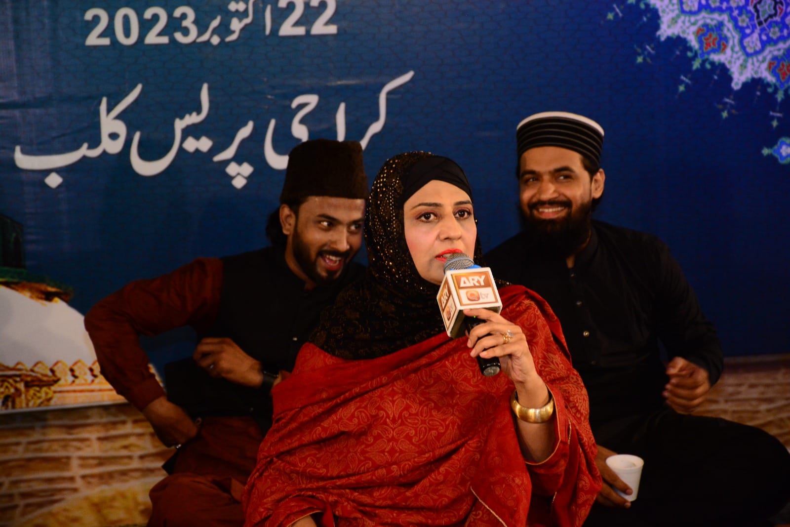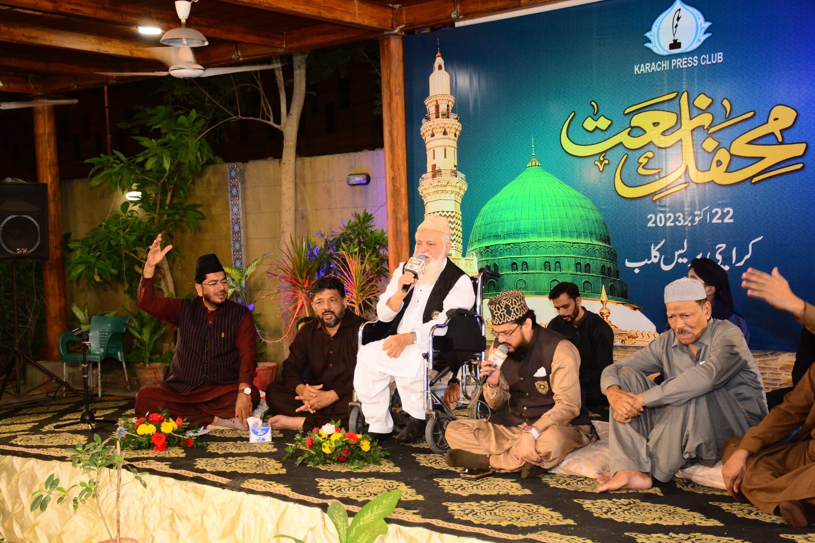 A grand Mahfil-e-Naat gathering was organized by Karachi Press Club. Solidarity was expressed with the oppressed Palestinian Muslims and martyrs. Members of the Karachi Press Club and their children also had the privilege of reciting the Naat of the Prophet (PBUH).