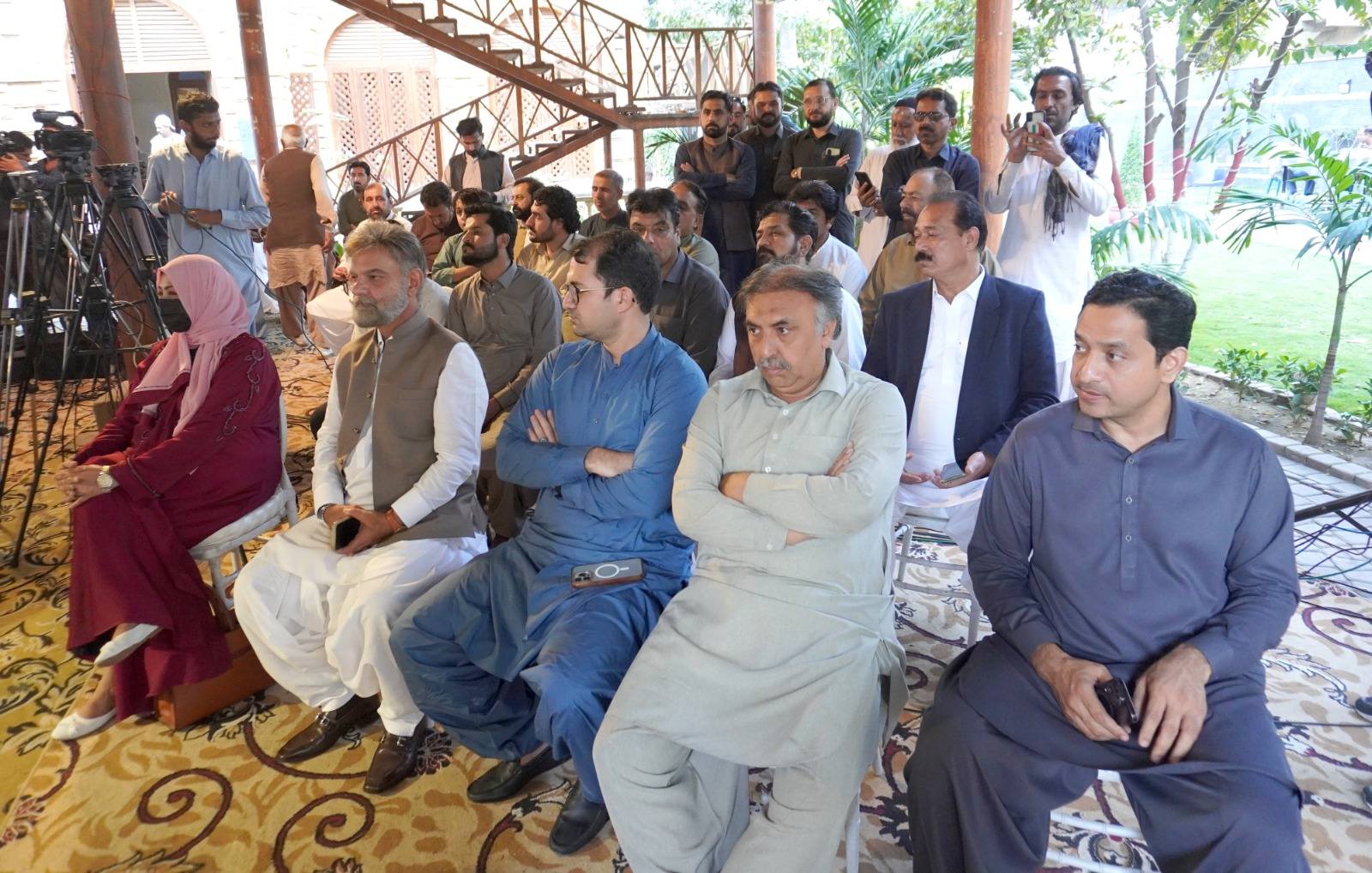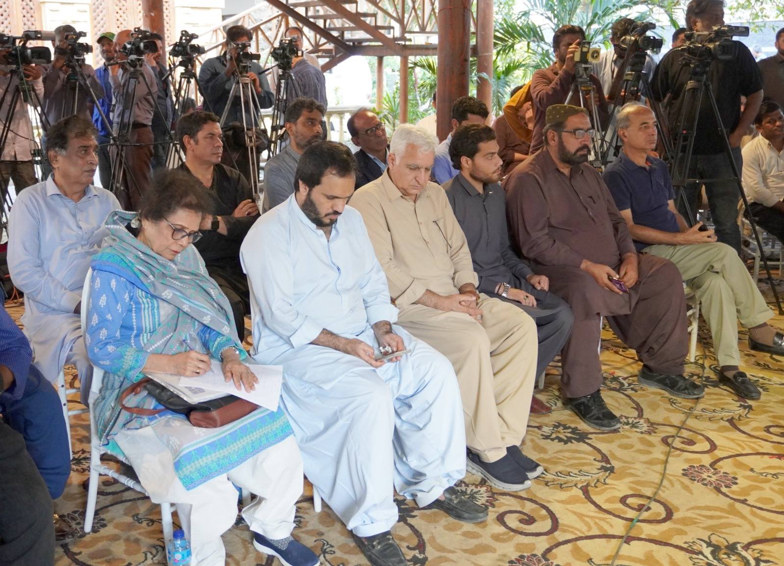 During their media briefing, prominent figures including Mehmood Khan Achakzai, Salman Akram Raja, Sardar Latif Khosa, Sahibzada Hamid Raza, Asad Qaiser, and Sajid Tareen emphasized that Pakistan can only progress if governed by the constitution. They criticized the current government for stifling free speech and claimed that true democracy is at risk.