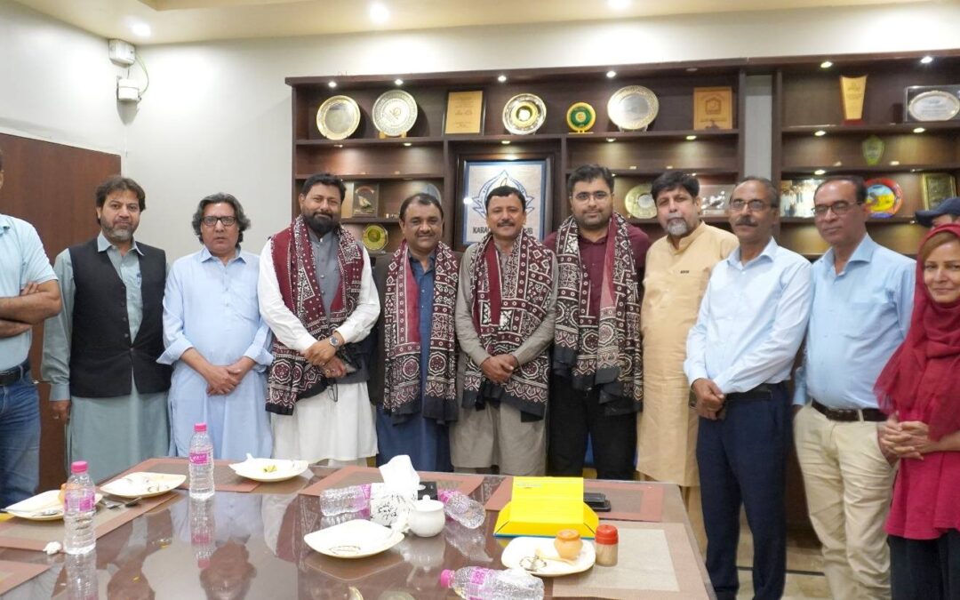 A delegation of the LDA (Lyari Development Authority), led by Director Land Yawar Abbas, visited the Karachi Press Club where they were warmly welcomed by President Fazil Jamili, Secretary Muhammad Sohail Afzal Khan, and the Governing Body members.