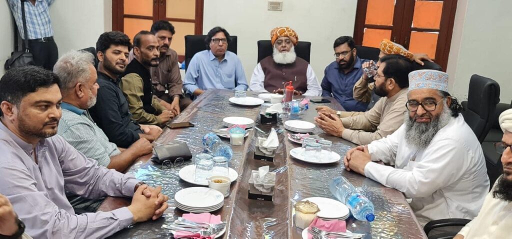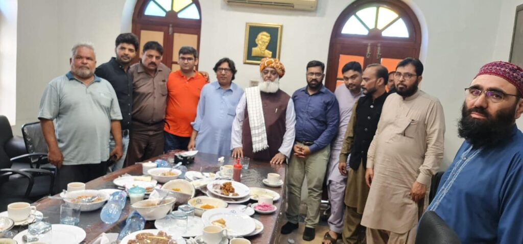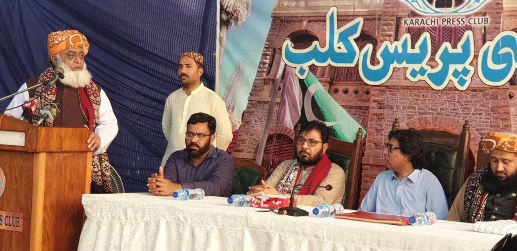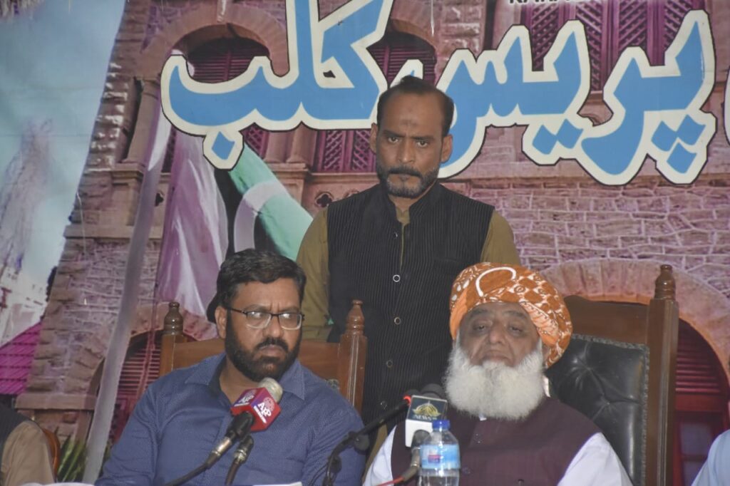 On Thursday, May 12, 2022, JUI head Maulana Fazal-ur-Rehman visits Karachi Press Club and addresses Met the Press.