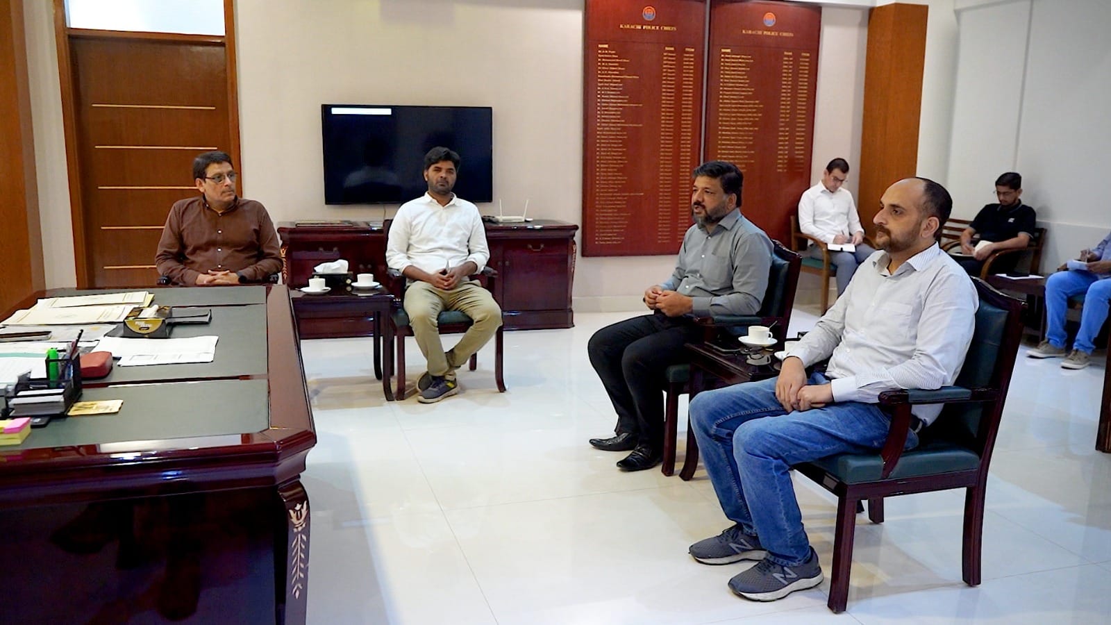 Additional IG Karachi Khadim Hussain Rind was met by a delegation led by Karachi Press Club Secretary Shoaib Ahmed. The delegation included Press Club Joint Secretary Aslam Khan Member Governing Body Farooq Sami, Liaison Committee Secretary Saqib Sagheer, Liaison Committee Members Shahid Anjum and Shah Mir Khan was also present. The delegation of Karachi Press Club congratulated the Chief of Police on assuming the post, for which the Chief of Police thanked them.