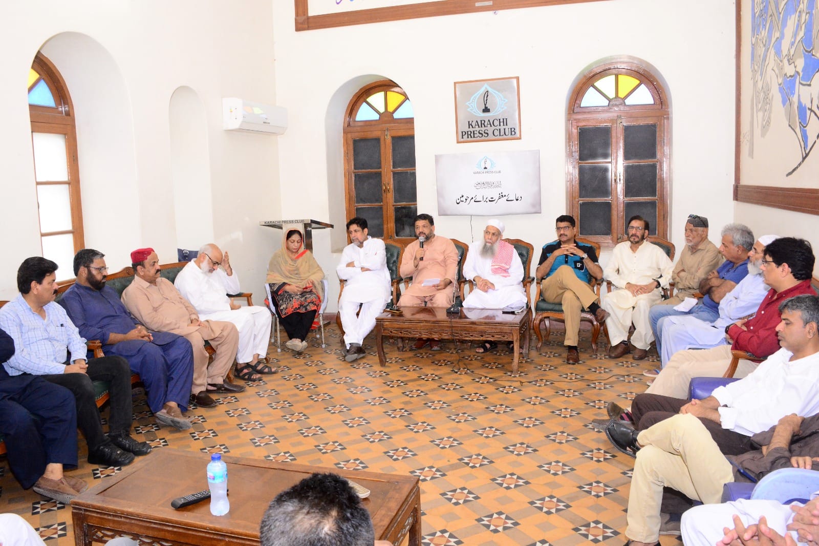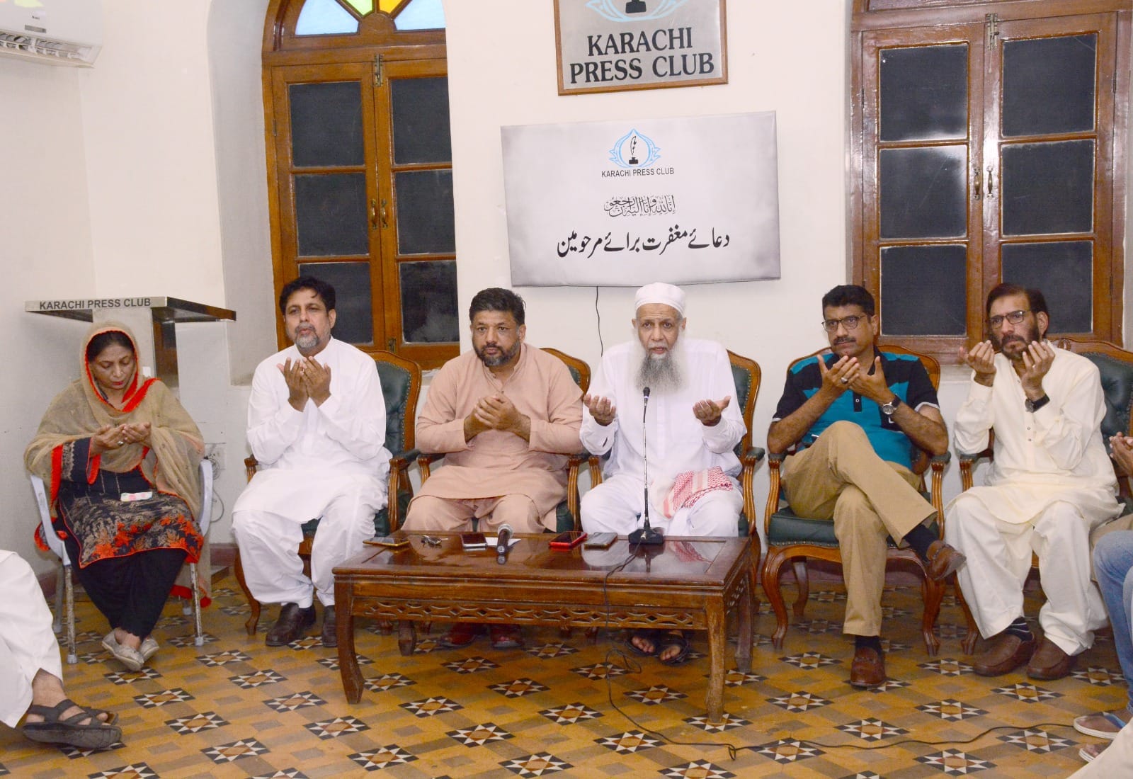 Karachi Press Club organized prayers for forgiveness at Ibrahim Jalais Hall on Friday to mourn the death of the members of the Press Club in the past few days. On this occasion, mother of Sohail Afzal Khan, son-in-law of photographer Muzaffar Mehdi, sister-in-law of Shahr Bano, mother of Tufail Ahmed, father of Tahir Aziz, mother of Shahid Mustafa, mother of Nasrullah Chaudhry, sister-in-law of Imran Ali, father of Pirzada Salman. Ayub Ahmed’s father, Syed Zeeshan Shah’s father, Mohammad Ali Farooq’s mother, Aamir Ashraf’s mother, Akhtar Nawaz’s mother, Ishaq Tanuli’s niece and former Information Secretary and Works and Services Secretary Imran Atta Soomro prayed for forgiveness for all the deceased. President Karachi Press Club Saeed Sarbazi, Secretary Shoaib Ahmed, Vice President Mushtaq Sohail, Khazan Ehtsham Saeed Qureshi, Joint Secretary Muhammad Aslam Khan, Governing Body Members Farooq attended the prayer ceremony. Sami, Shams Kareo, Zulfiqar Rajpar, Ex-President Fazil Jamili, Tahir Hasan Khan, Secretary General PFUJAH Khanzada, Ex-Secretary Maqsood Earlier, Maulana Sanaullah, speaking on the subject of death, said that the world is a temporary abode. Death is an inevitable reality from which it is not possible to escape. We should try to prepare for real life in this temporary life. i do At the end of the event, the President and Secretary Karachi Press Club thanked all the members and their families for coming to the Press Club.Yousufi, Arman Sabir, Muhammad Rizwan Bhatti, President K UJ Khalil Nasir, Vice President Muhammad Munsif. Journalists including Pep Mohammad Jameel, Asghar Umar, Fida Abbasi, Naseer Ahmed and Tariq Moin participated in large numbers. Renowned religious scholar and preacher Maulana Sanaullah Rahmani expressed his condolences to the families of the deceased