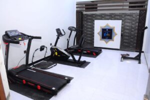 This state-of-the-art facility encompasses a fitness gym, TV hall, computer lab, restrooms, a prayer room, and attached bathrooms. The complex provides a contemporary space for rest and recreation, establishing a secure working platform for women members. The beautifully designed hall can accommodate 50-60 participants for training workshops and tailored courses.
