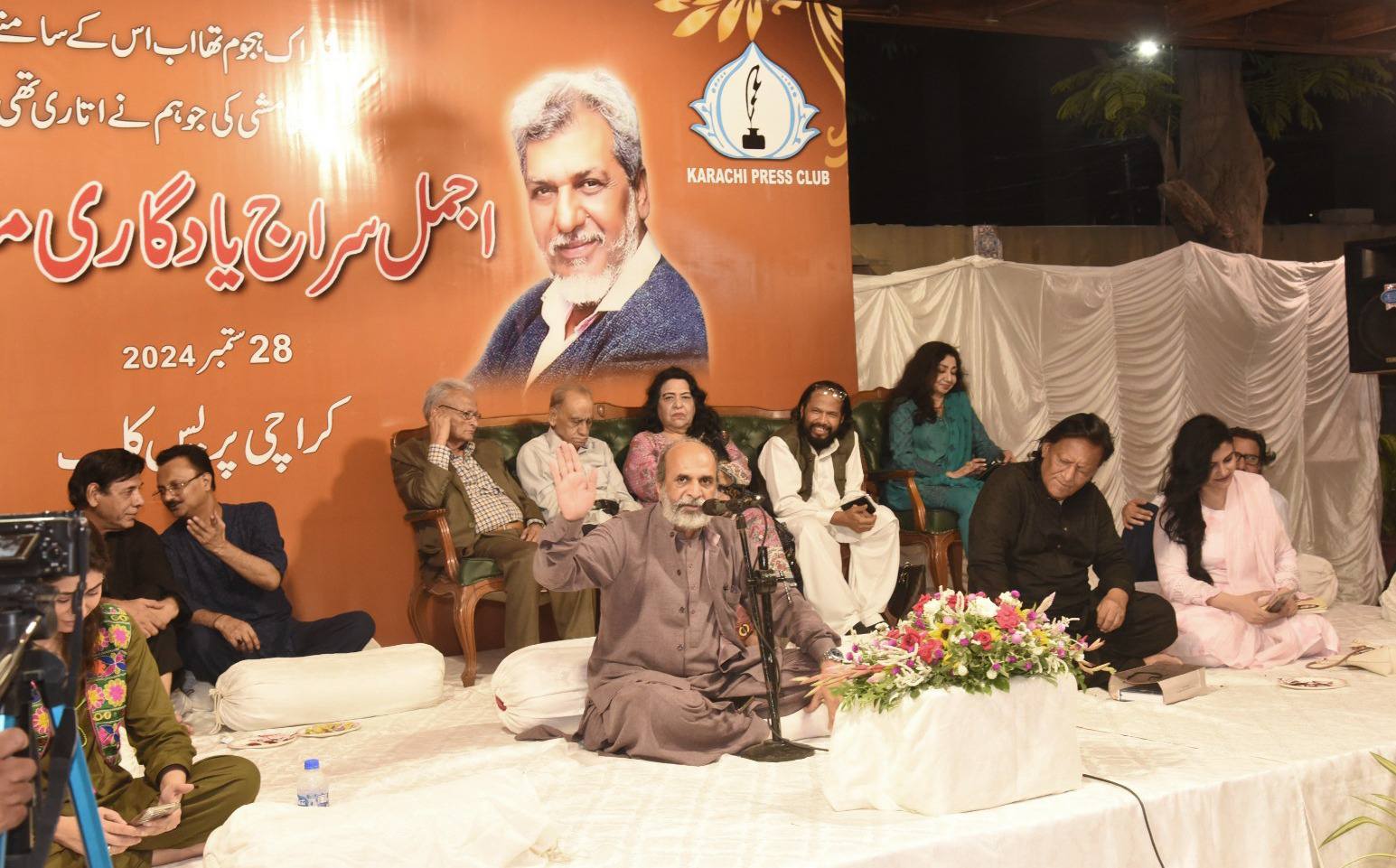 On September 28, 2024, the Karachi Press Club organized a poetry session at Najeeb Terrace to honor the late journalist and poet Ajmal Siraj. The event featured renowned poets Anwar Shaoor, Fatima Hassan, Alauddin Khanzada, Fazil Jamili, Javed Saba, Nasira Zuberi, Seeman Naveed, Abdul Rehman Momin, and Sana Ghori, among others, who presented their works in a heartfelt tribute to Siraj’s legacy.