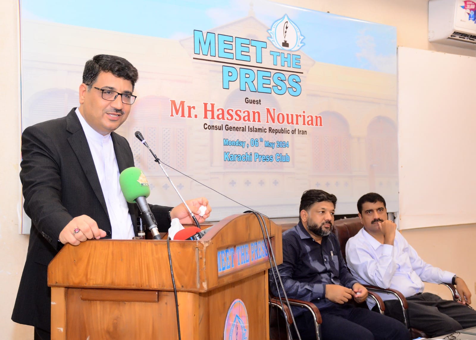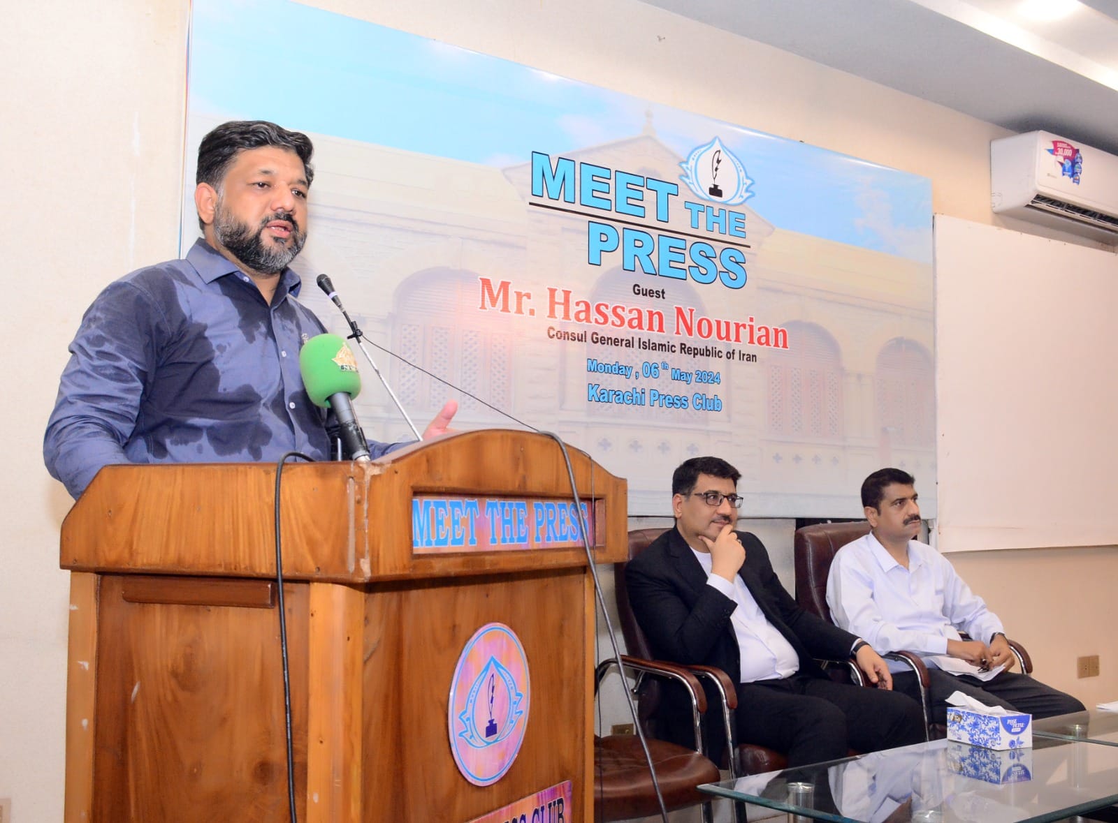 Consul General Hassan Nourian addressed the press, affirming the deep-rooted cultural and historical bonds between Iran and Pakistan. He emphasized the importance of friendly relations between the two countries for regional stability and prosperity. Touching upon various topics discussed during the recent visit of the Iranian President to Pakistan, including economic cooperation, security issues, and the Palestinian cause, Consul General Nourian reiterated the condemnation of Israeli aggression.